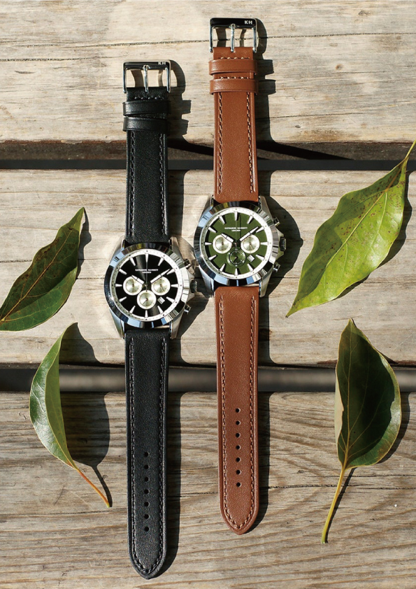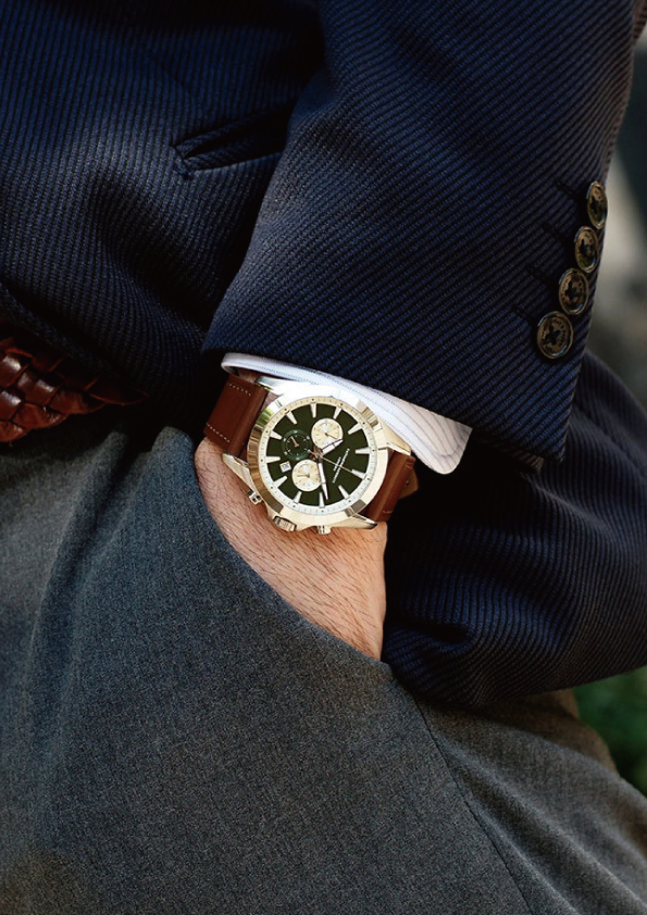 カーキ色の文字盤がアウトドアな雰囲気を醸し出していて、カジュアルな服装と相性バッチリ!