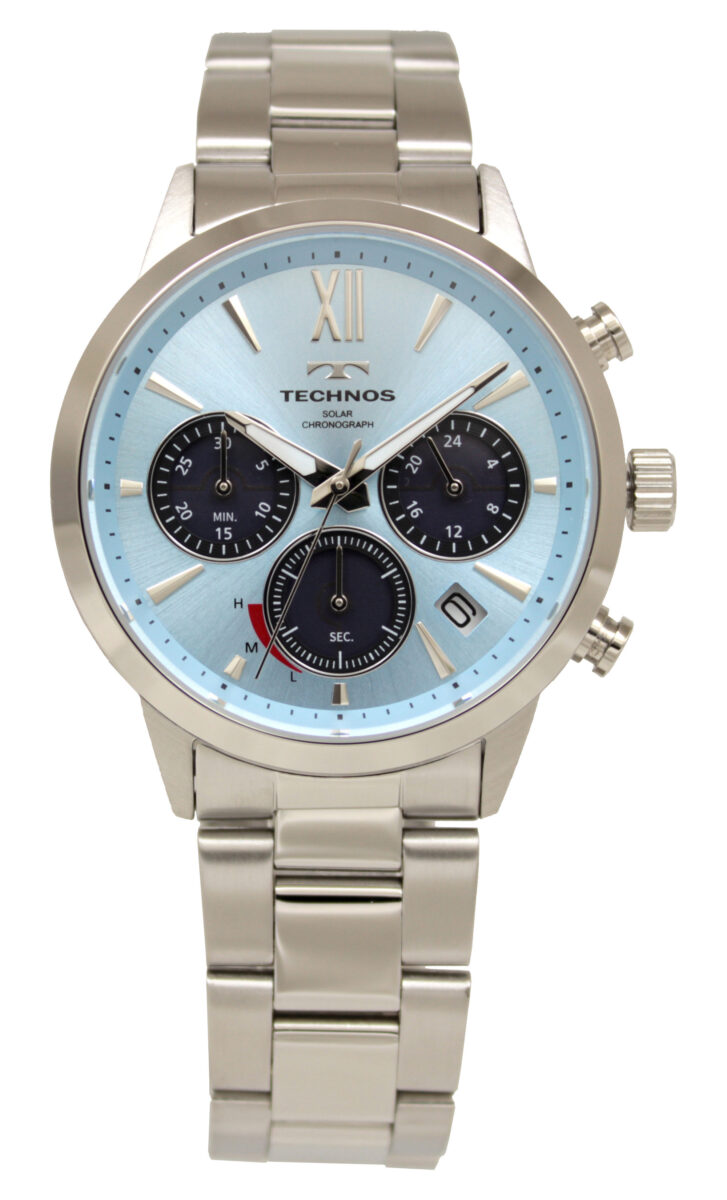 爽やかなアイスブルーの文字盤が、普段着にも、就活でのスーツや白シャツと相性抜群です。